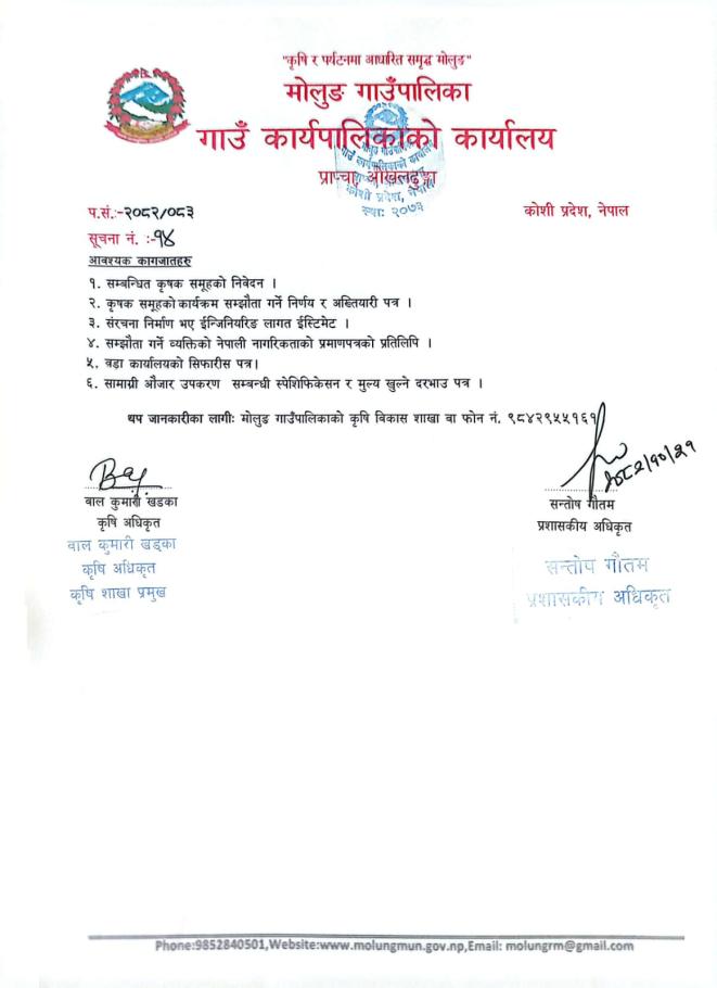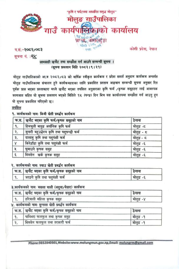 लाभग्राही छनौैट तथा सम्झौता गर्न आउने सम्बन्धी सूचना