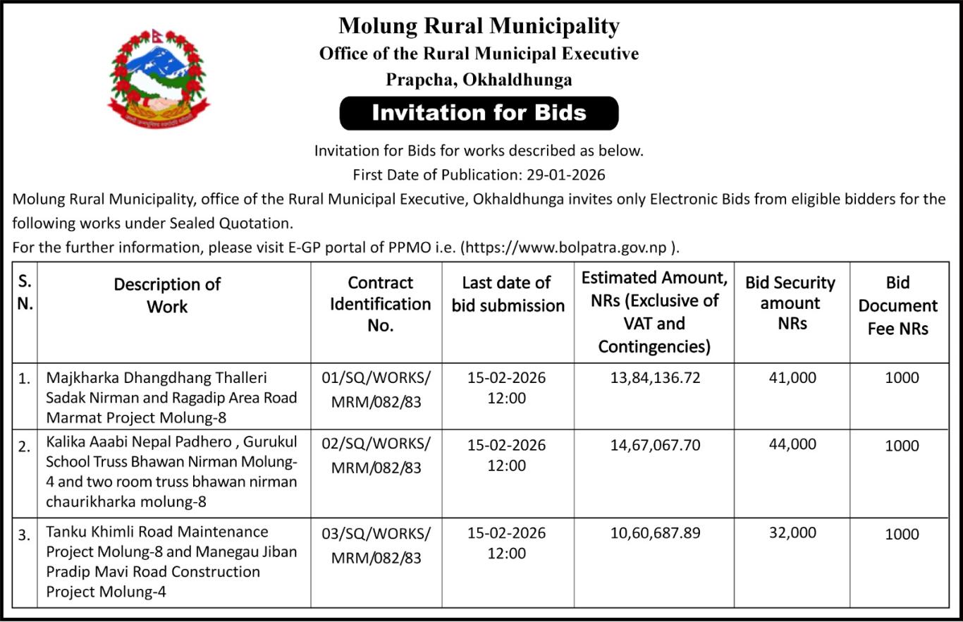 सार्वजनिक खरिद/बोलपत्र सूचना